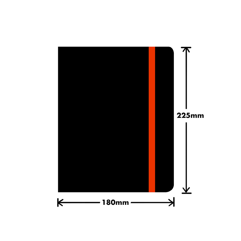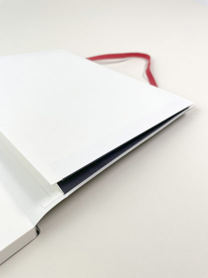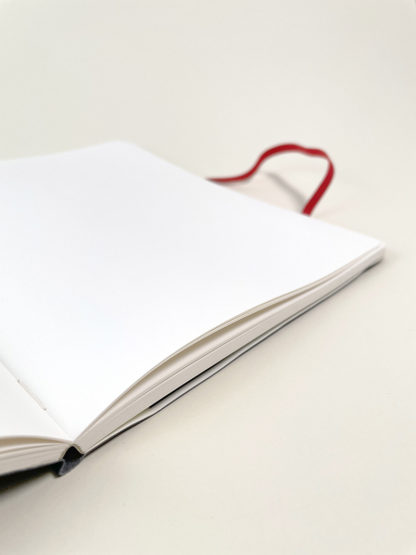 Each sketchbook contains 80 pages of beautifully smooth, plain, off-white paper (100gsm) which is acid-free and sustainably-sourced. Stitch-binding allows the pages to open flat making it a pleasure to work in. All wrapped in a softback vegan PU leather cover which offers protection as well as flexibility. It’s complete with rounded corners, a ribbon bookmark, a handy expandable back pocket and a bright red band of elastic to keep it all tidy when closed.