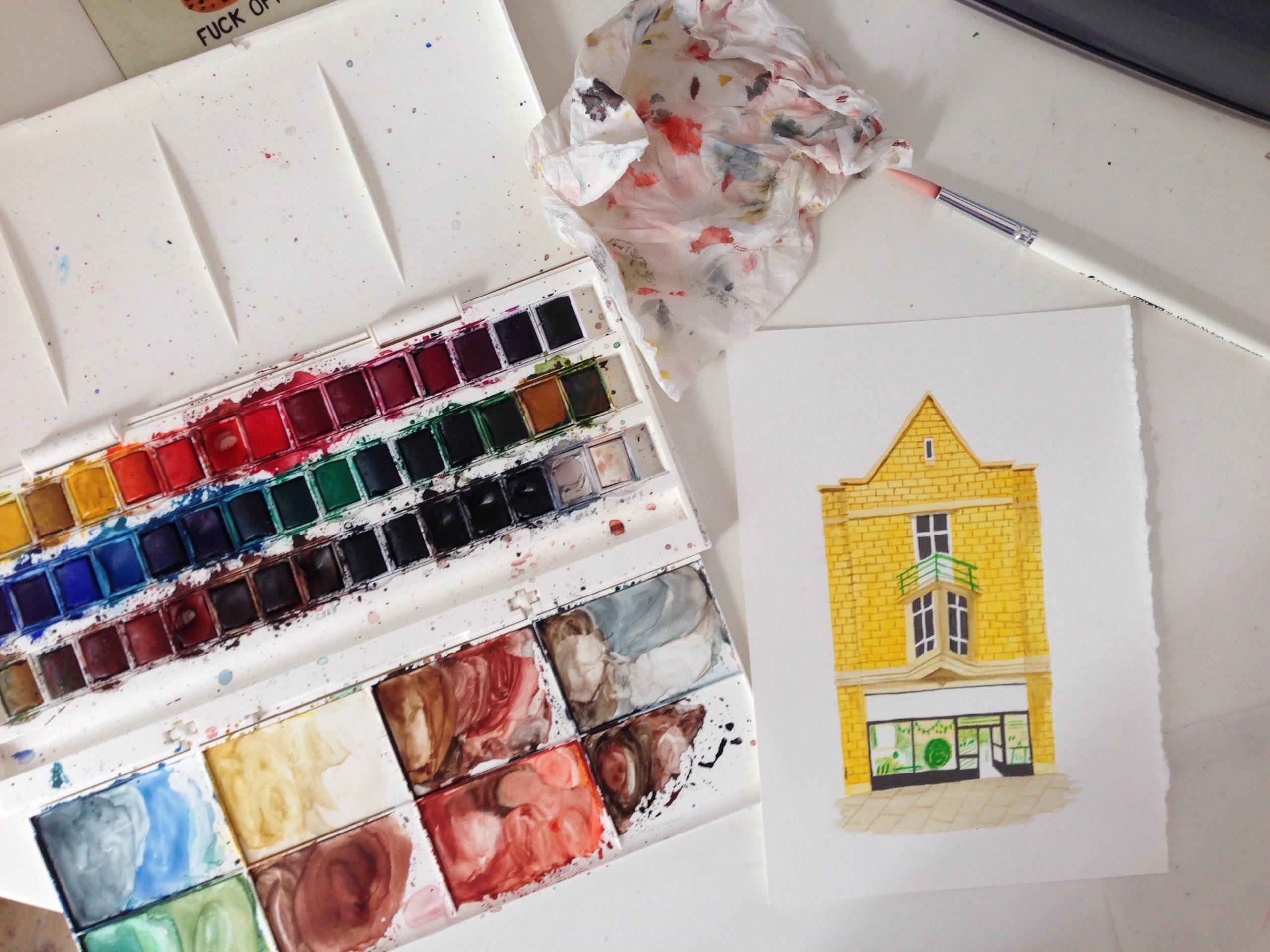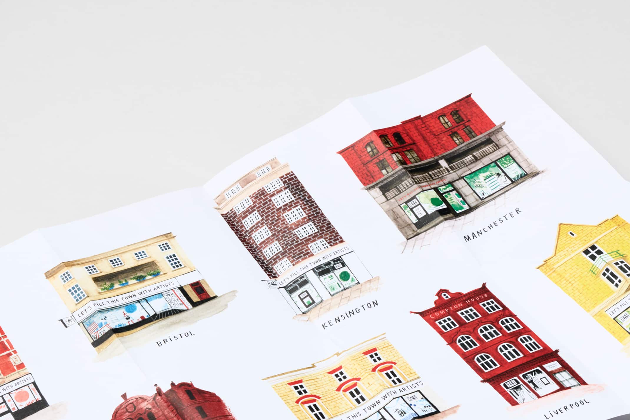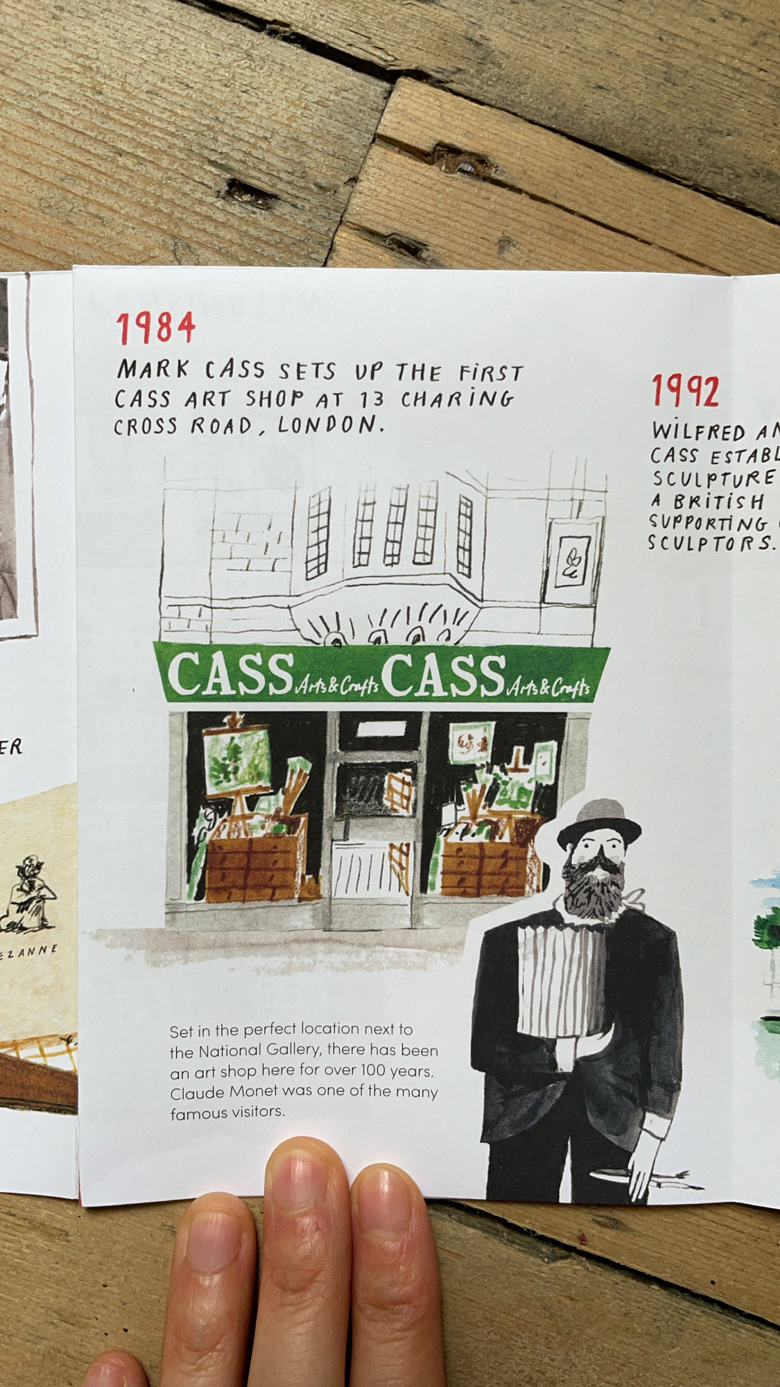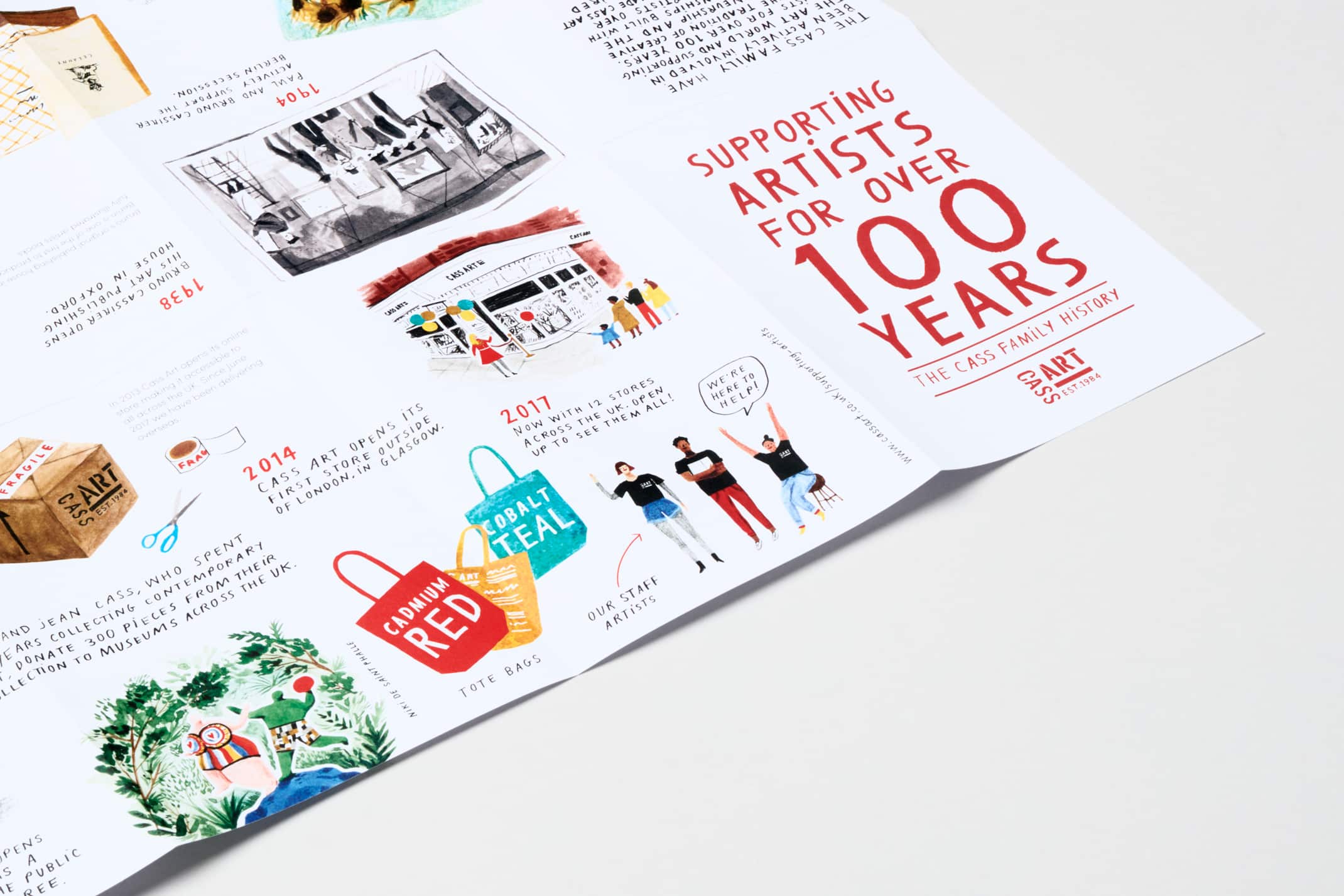 The timeline booklet opens up into a poster featuring all 12 Cass Art shop fronts and is widely available to pick up for free in-store. Nina’s illustrations and handwriting have also been used for promotional postcards and even on the staff’s uniforms!