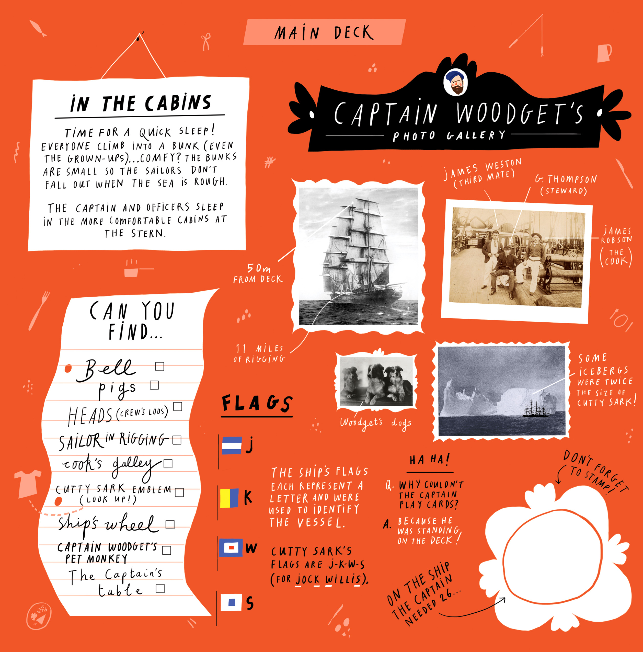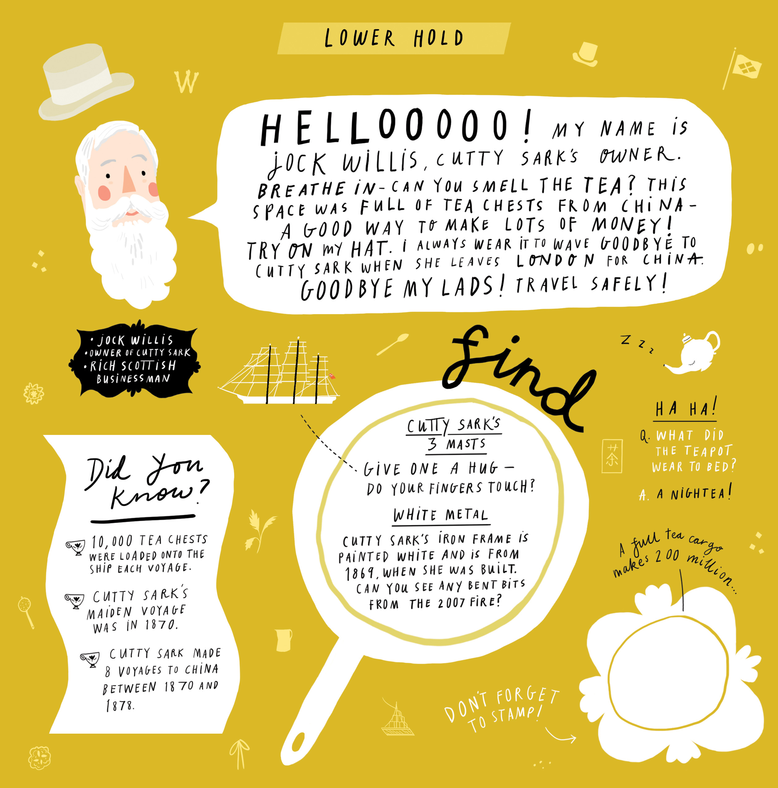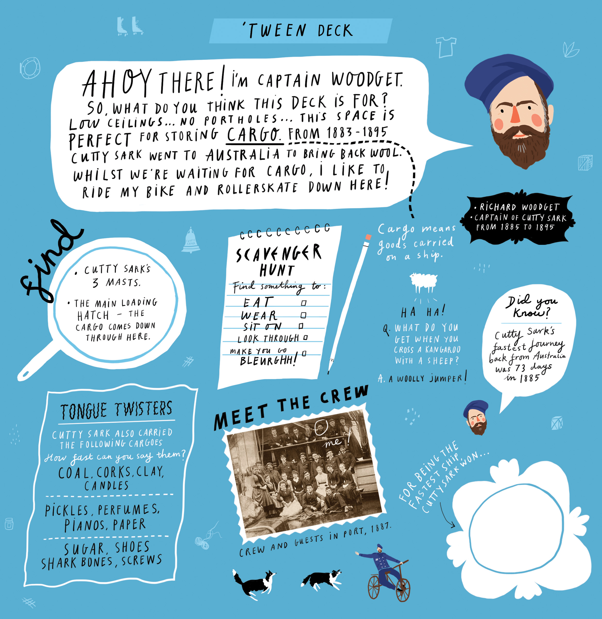 Featuring four illustrated characters associated with Cutty Sark’s history, visitors are guided around the ship via fun activities, fascinating trivia and a quest to find all of the stamps on board during their trip.