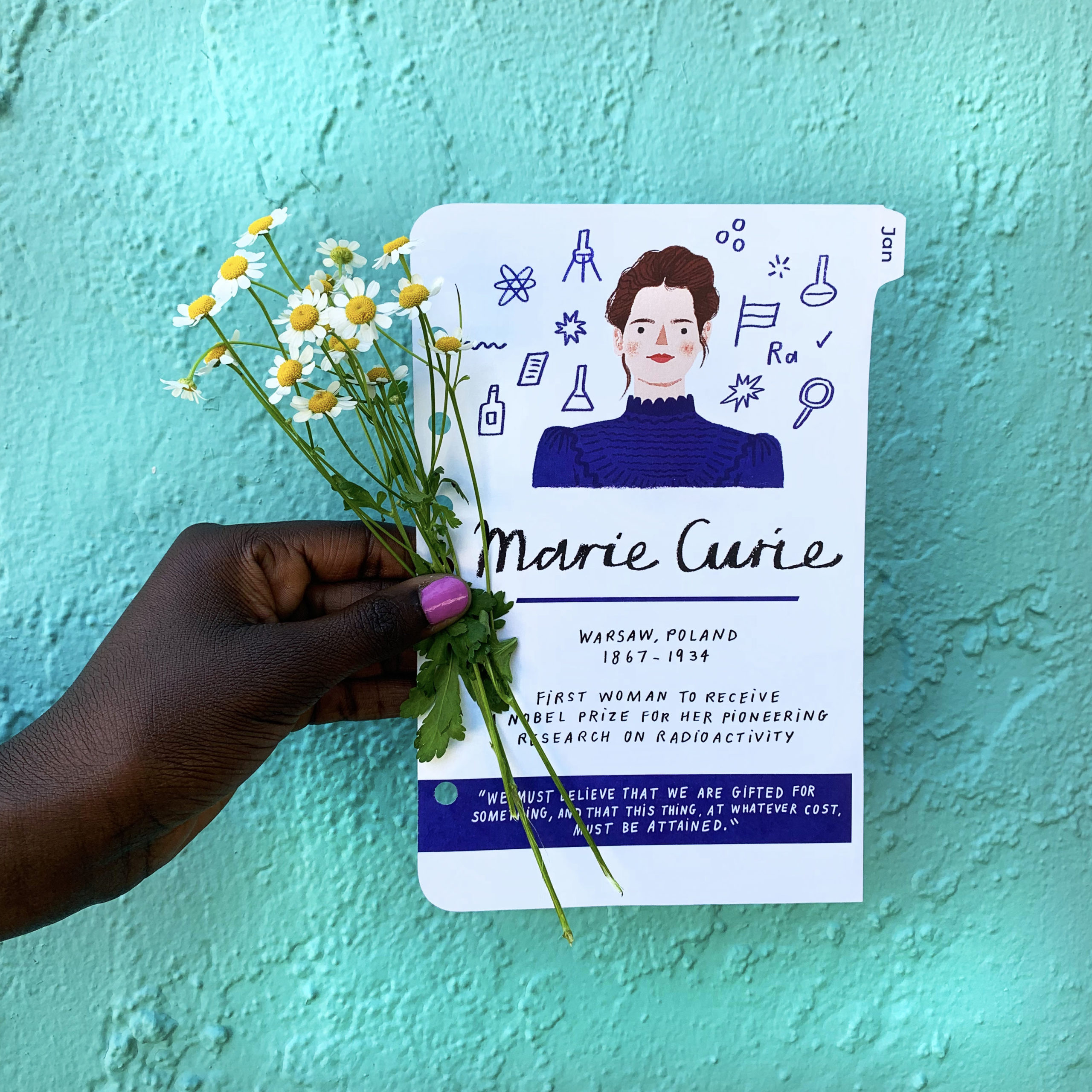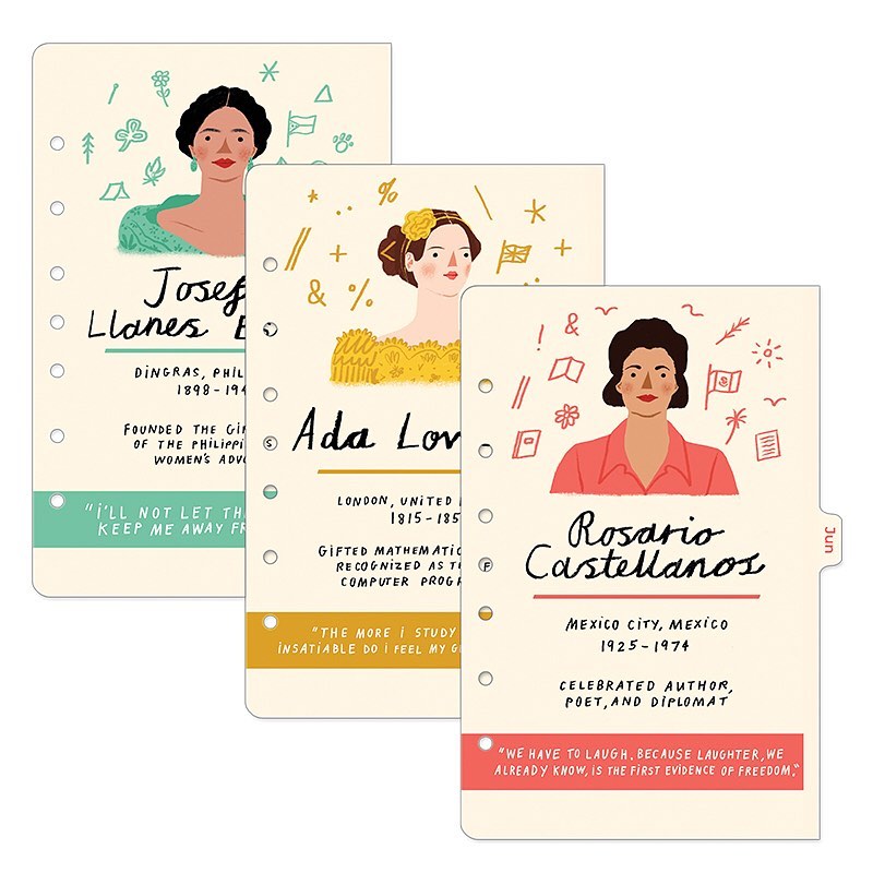 Featuring Marie Curie, Kalpana Chawla, Shirley Chisholm, Teresa CarreƱo, Simone de Beauvoir, Efua Sutherland, Fanny Durack, Corrie Ten Boom, Keiko Fukuda, Ada Lovelace, Rosario Castellanos and Josefa Llanes-Escoda.