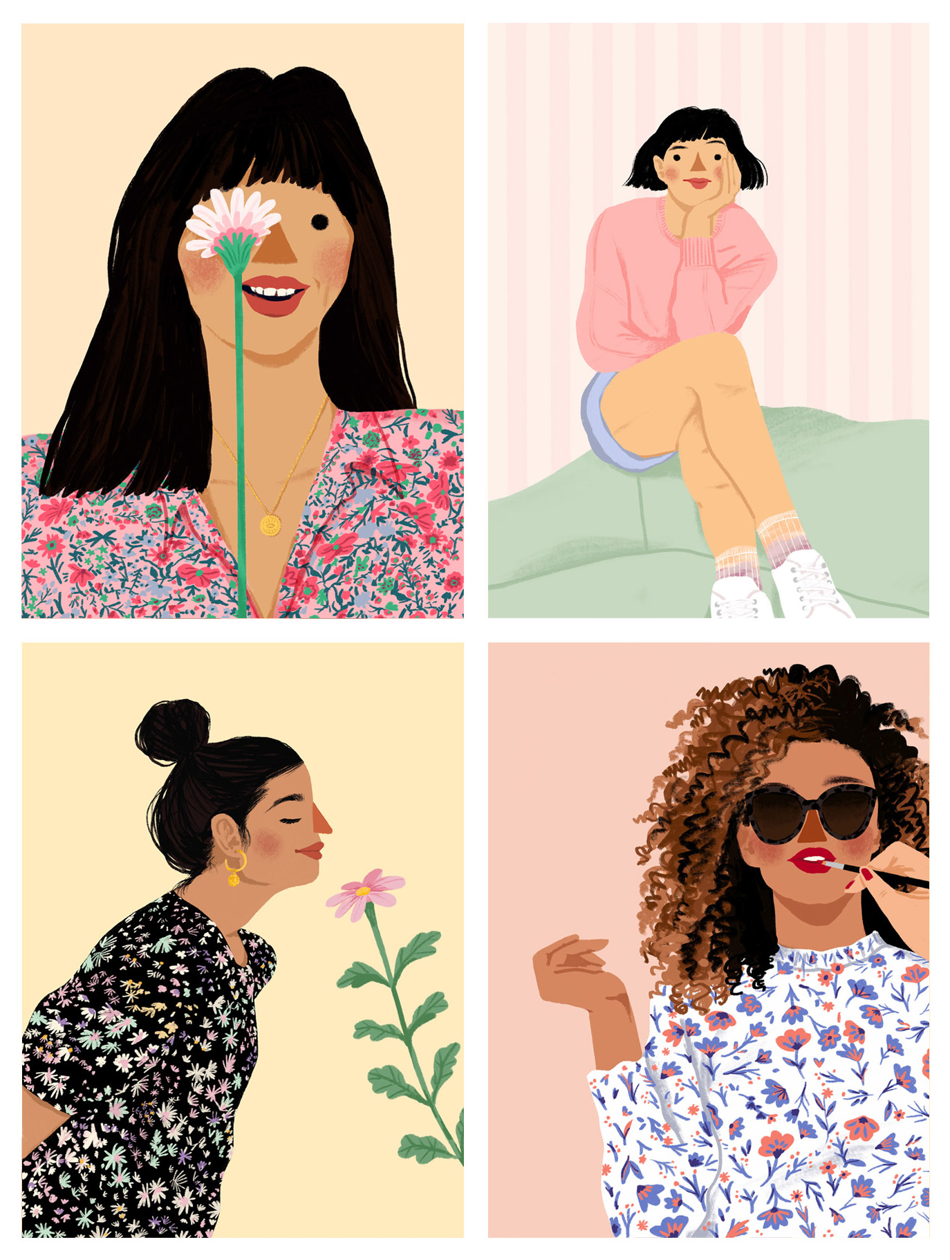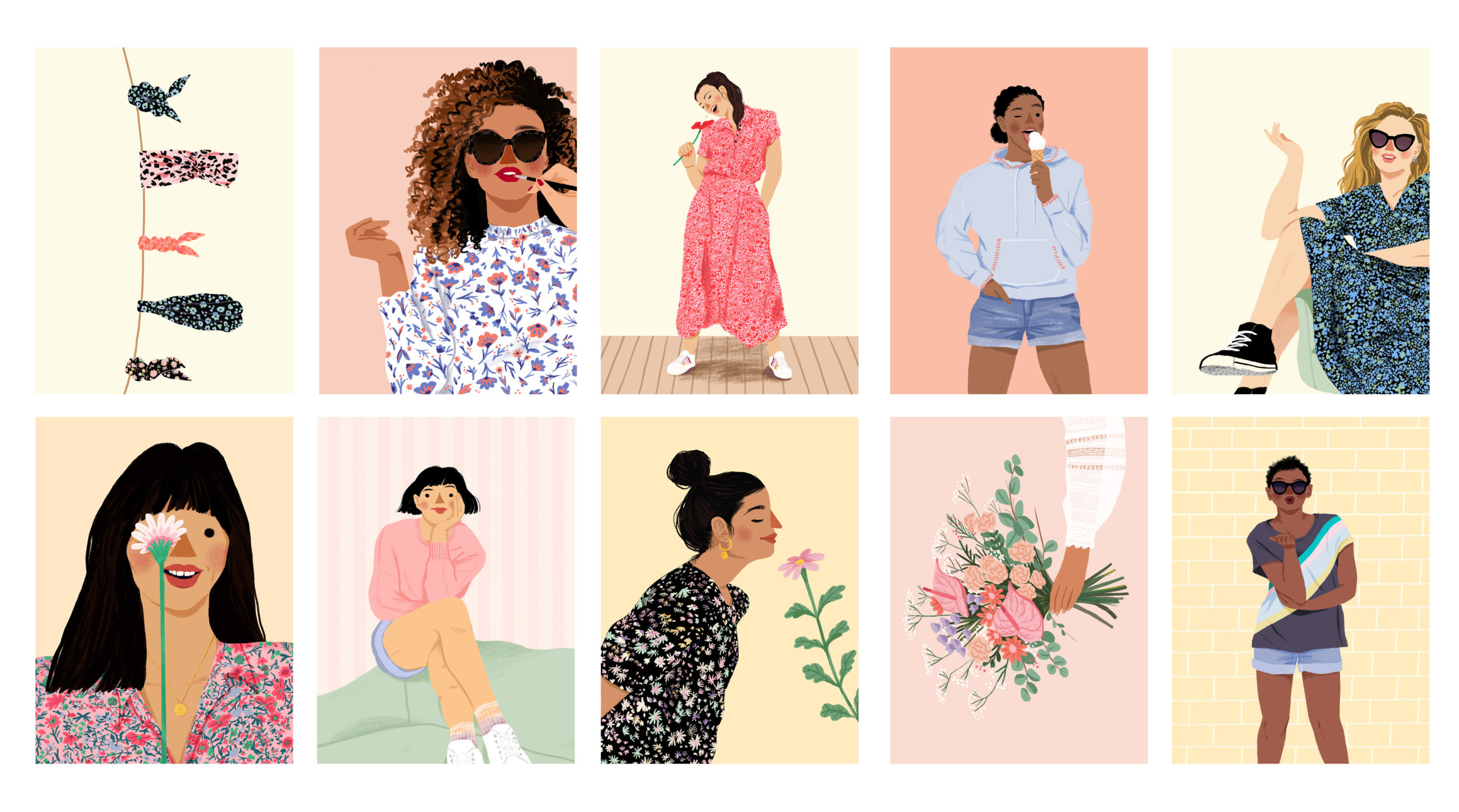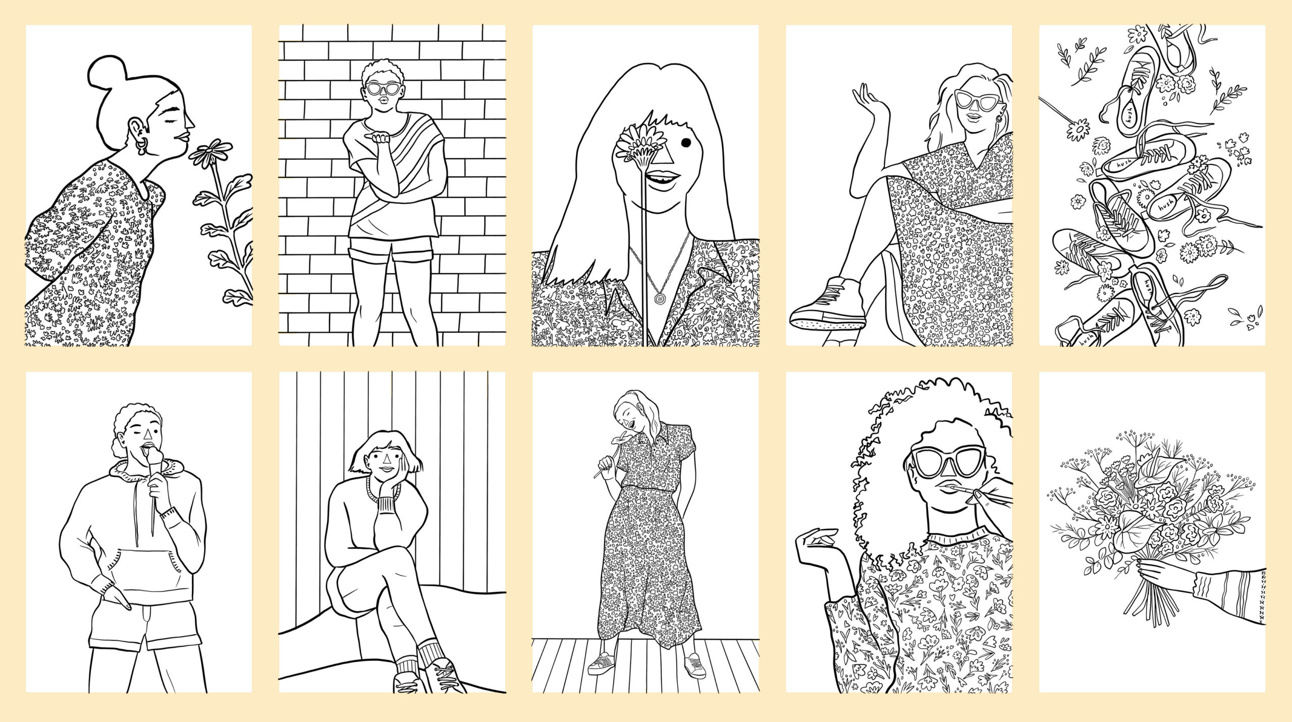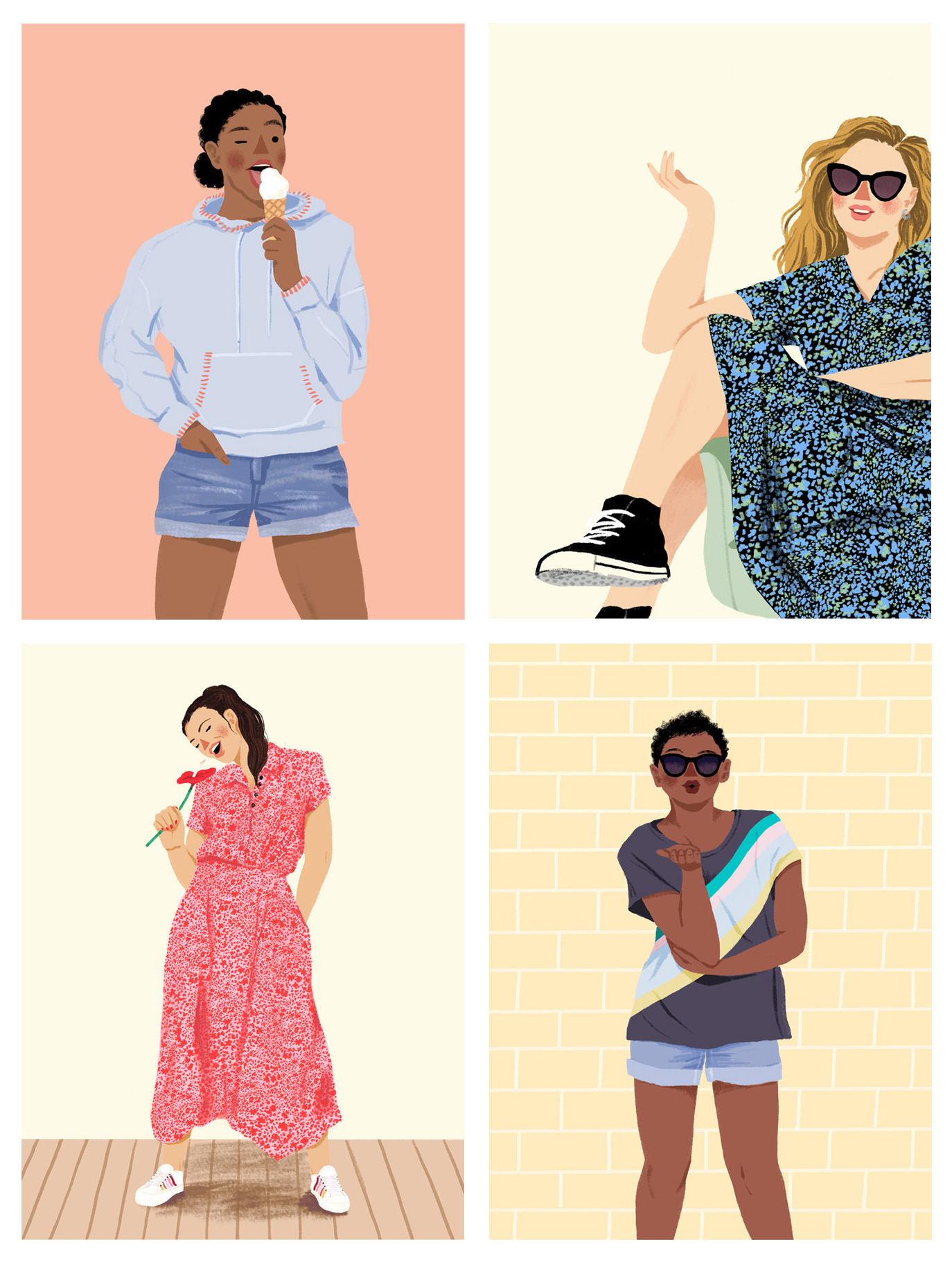 Nina illustrated characters wearing various items from the new range which featured in both the Life etc magazine lookbook and also in a promotional colouring book.