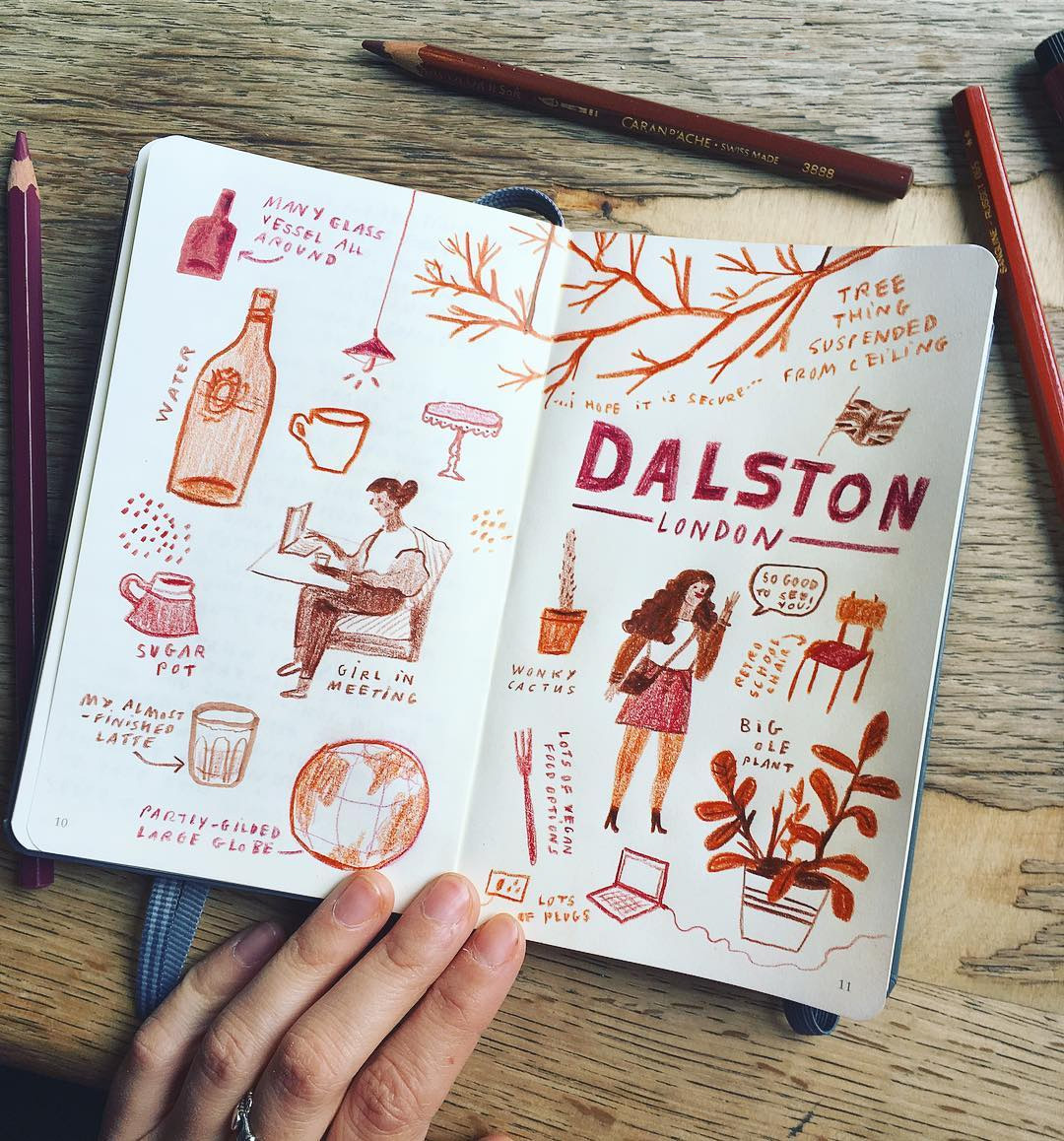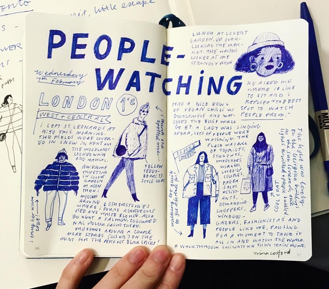 Nina uses a sketchbook for almost everything. From taking notes at talks, to people-watching on public transport, trying out art materials and techniques to being out and about and exploring the world – it’s a huge part of Nina’s creative process and her favourite medium!