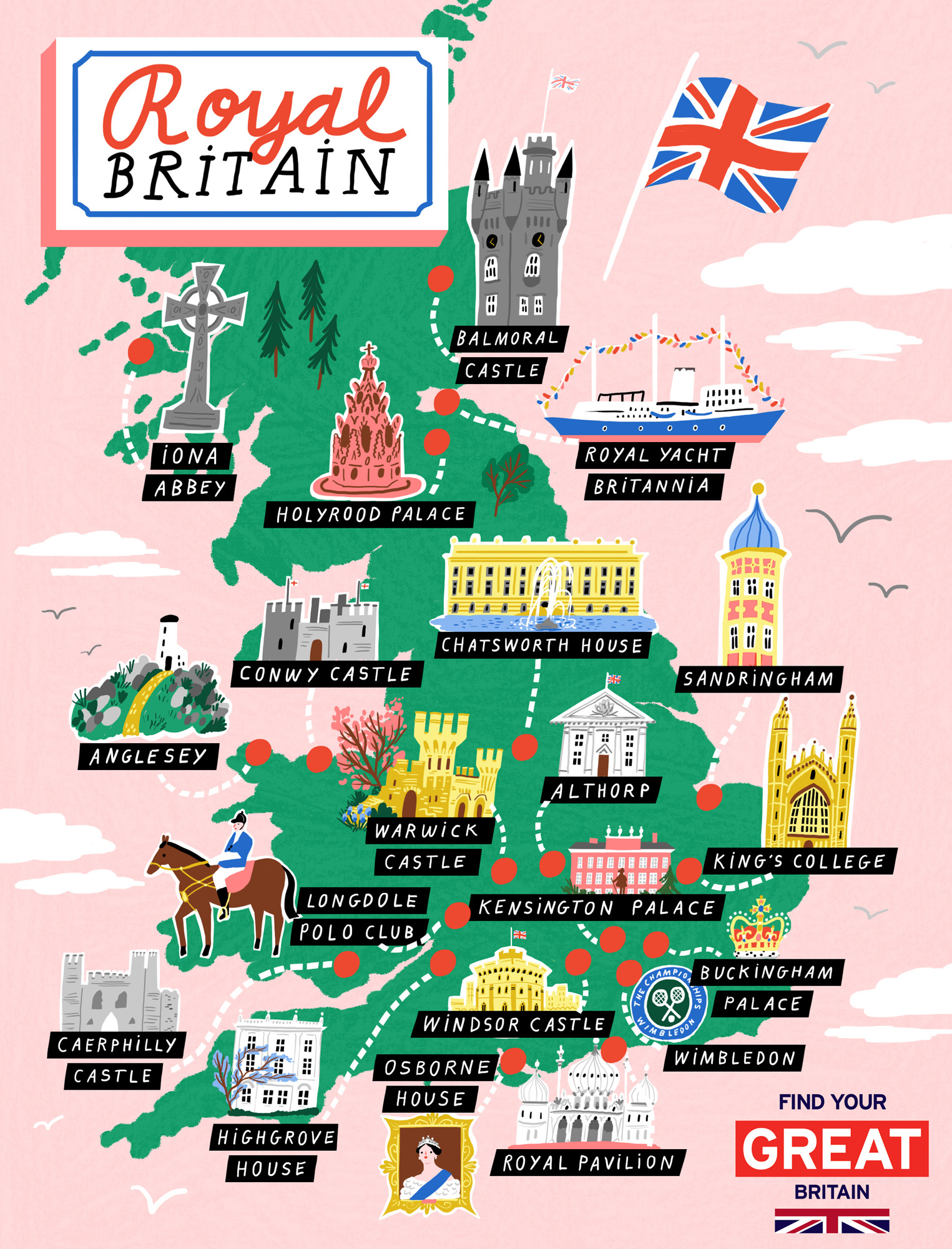 Ahead of the royal wedding in 2018, Nina was asked to collaborate with Visit Britain on a series of illustrations celebrating the country’s royal heritage.