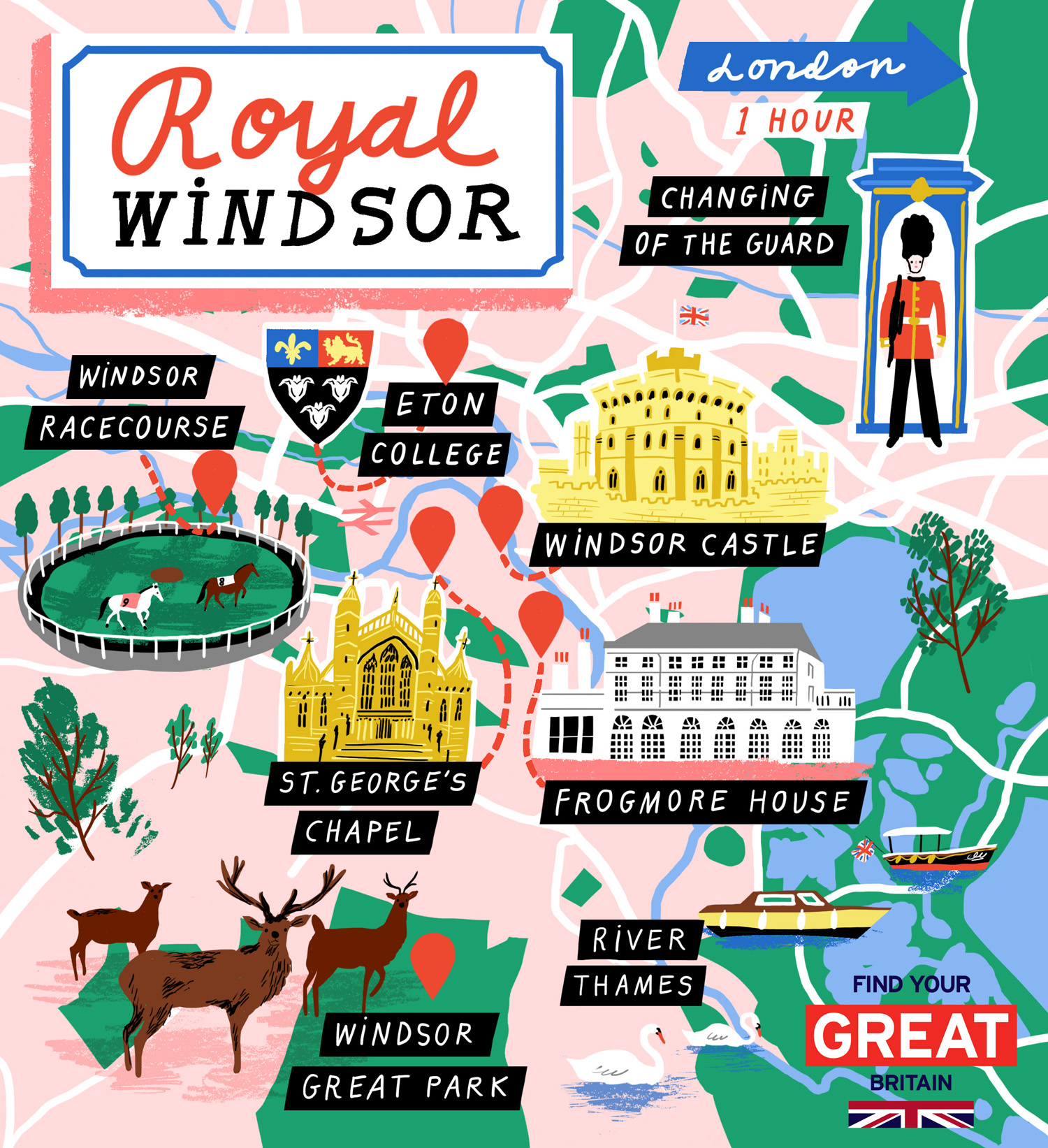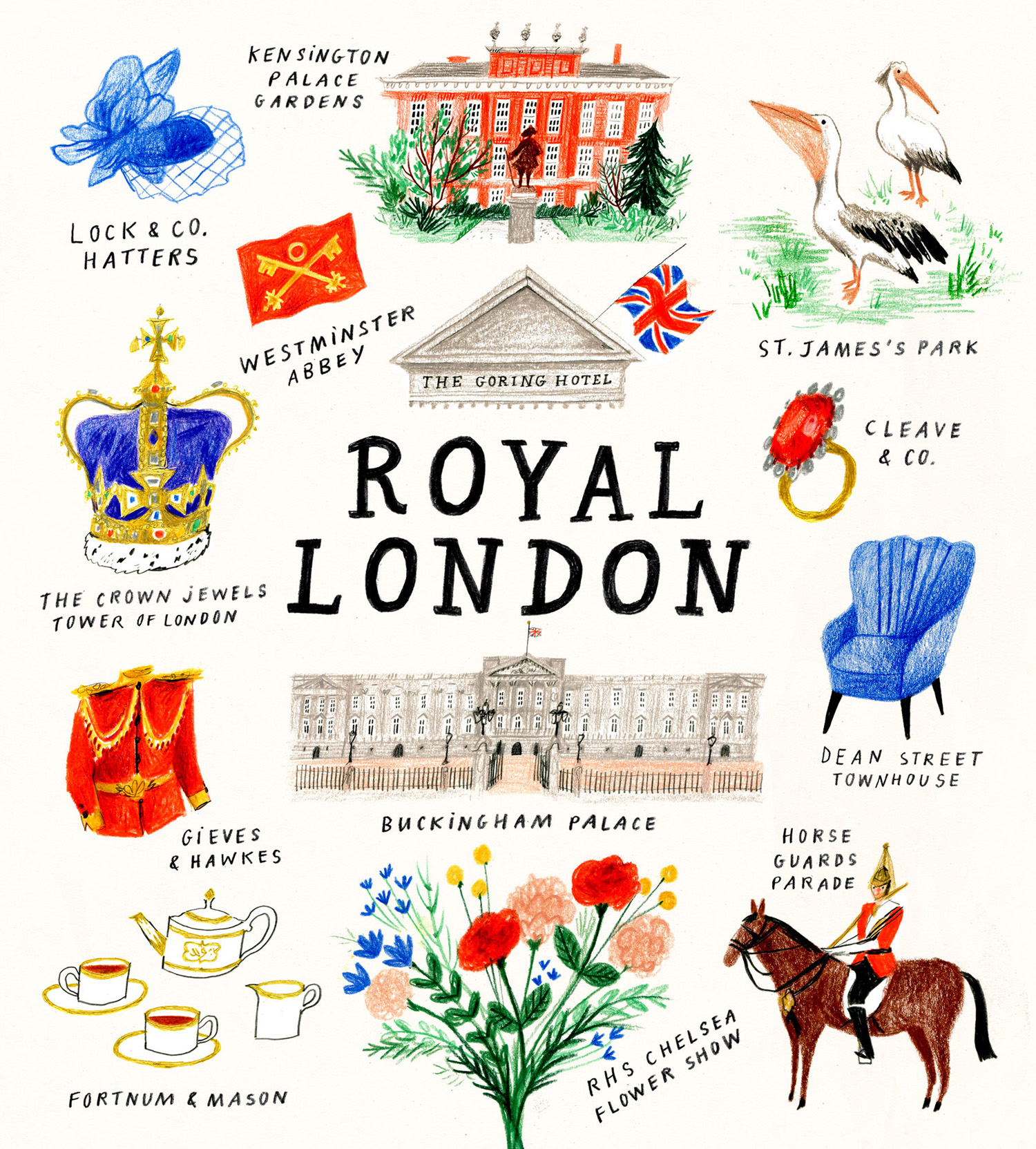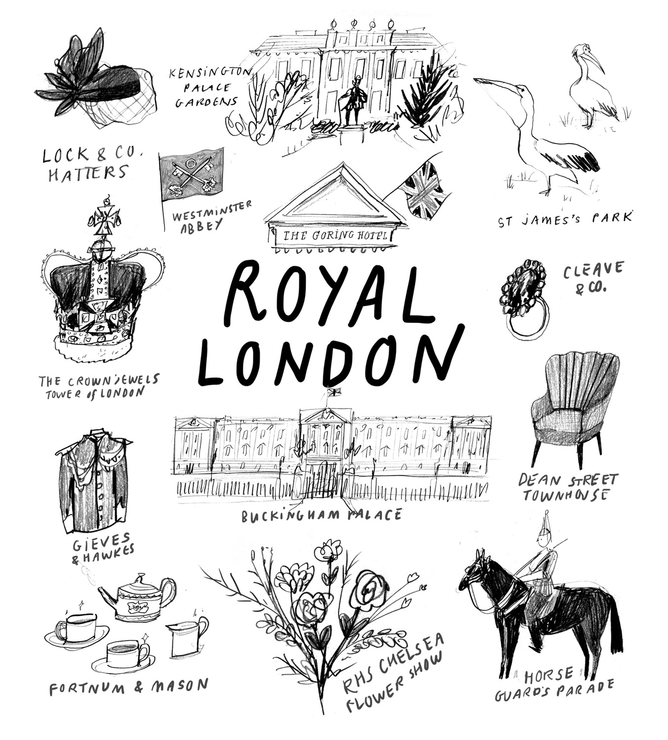 Nina created maps of royal landmarks in Windsor and across Britain, compiled icons associated with royal London and depicted brands that carry the coveted Royal Warrant.