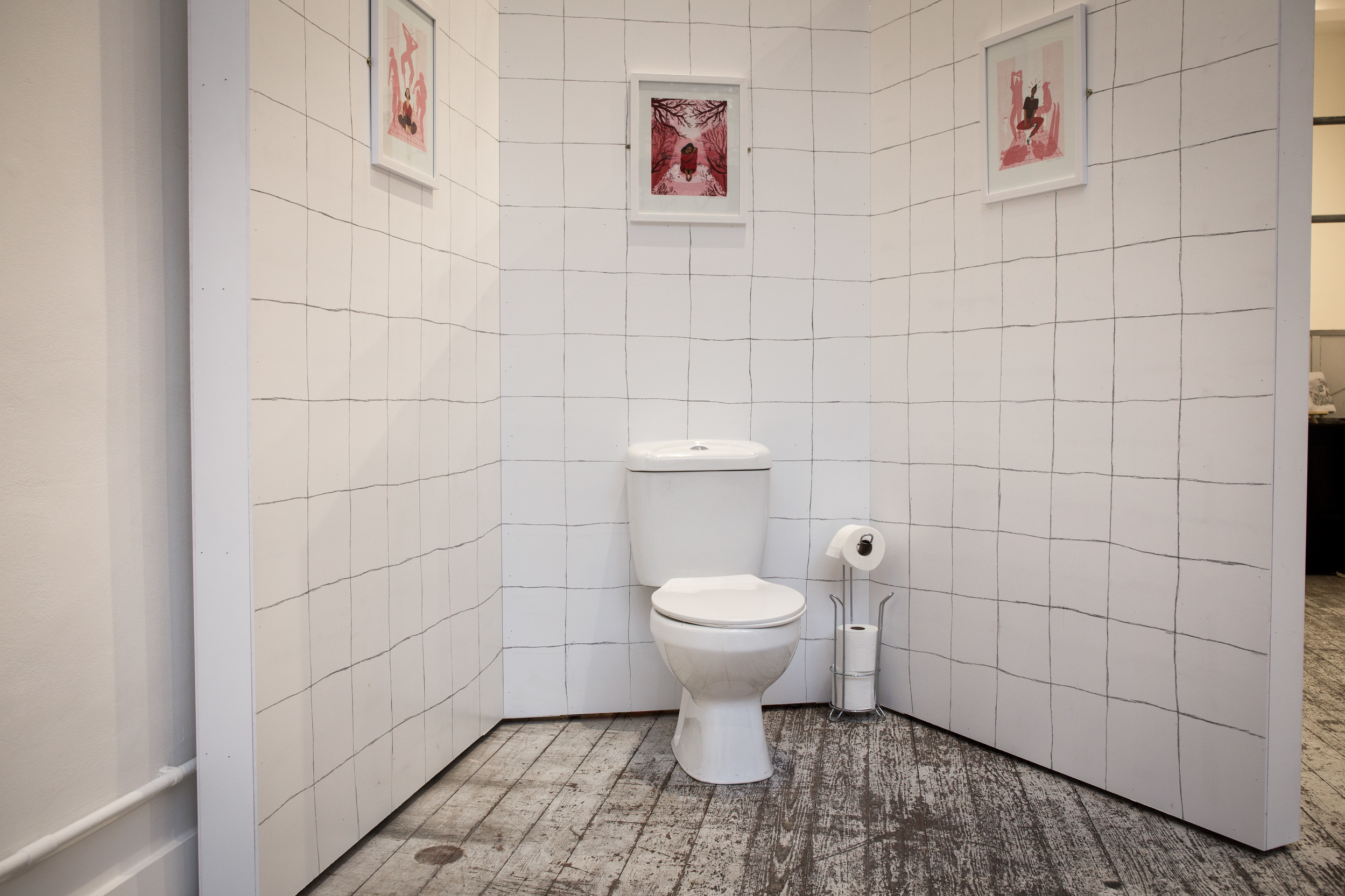 The aim of the project was to raise awareness of the fact that 1 in 3 women in the world don’t have access to a safe or clean toilet. Along with a handful of other artists from the UK and Sierra Leone, Nina took over a gallery space in London’s Truman Brewey that was designed to look like toilet cubicles.