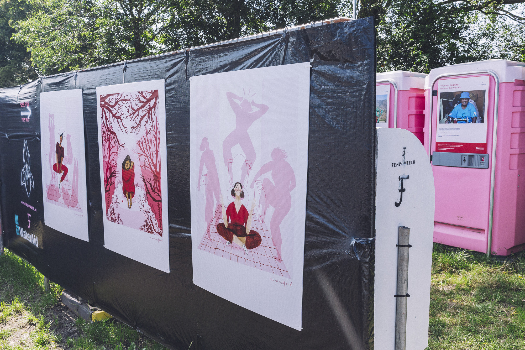 Nina’s illustrations were printed up large scale and installed at Glastonbury 2019, in the She Pee area as well as on postcards included in a Fempowered mail pack.